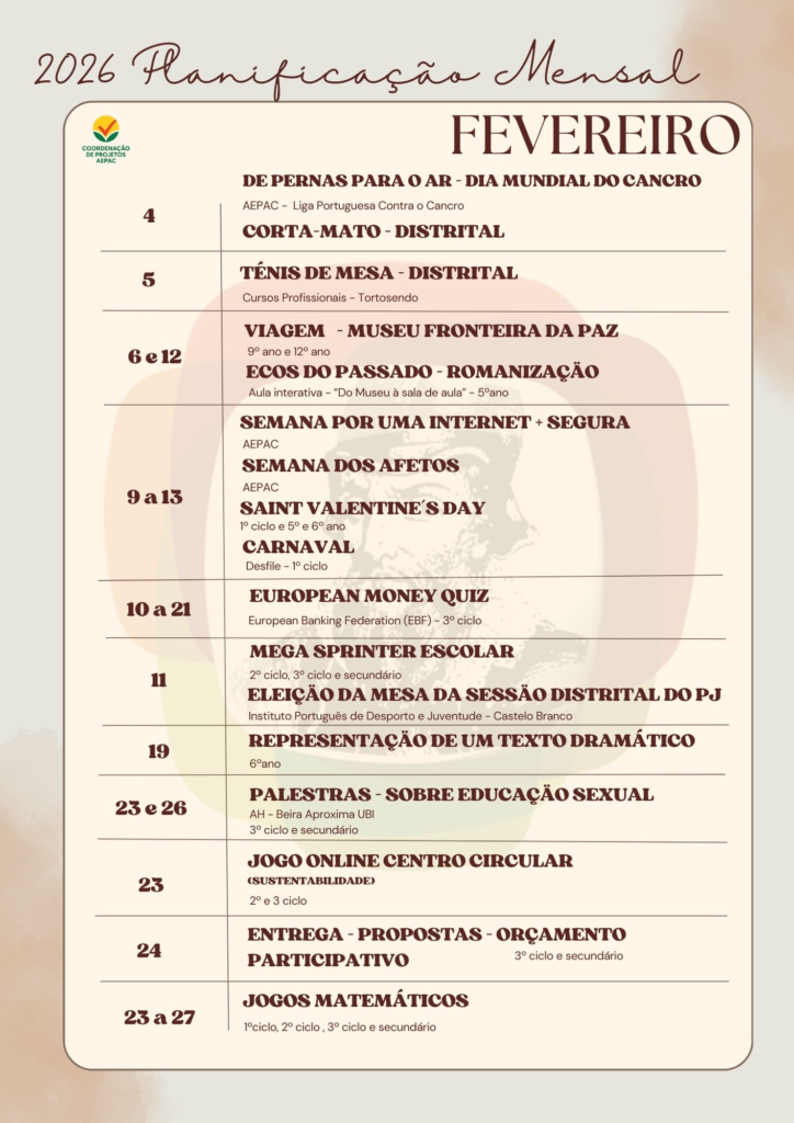 📅 Já está disponível a planificação das atividades para o mês de fevereiro!Ao longo das próximas semanas, os nossos alunos vão participar em diversas iniciativas pedagógicas,…