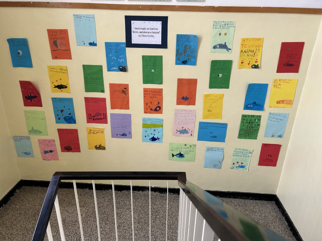 ✨ Inspirados pelo livro “Siiim, salvámos a baleia!”, os alunos das turmas CE3 e CE4 arregaçaram as mangas e criaram um mural cheio de cor, consciência…