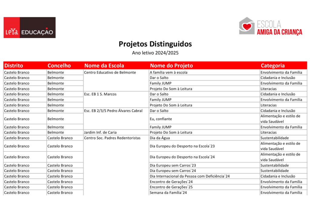 Logo pela manhã uma boa notícia! Pelo 4ºano consecutivo os projetos dos Servico de Psicologia e Orientacao – AEPAC -Belmonte foram distinguidos com o prémio da LeYa Educação, Escola Amiga da Criança, que tem o selo do psicólogo Eduardo Sá e CONFAP (Confederação Nacional das Associações de Pais).
