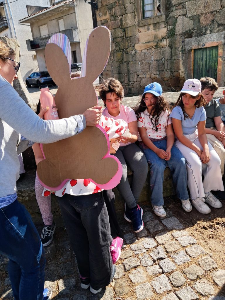 A atividade decorreu no adro da Igreja de Caria e consistia em encontrar 6 ovos escondidos em vários locais perto da igreja.