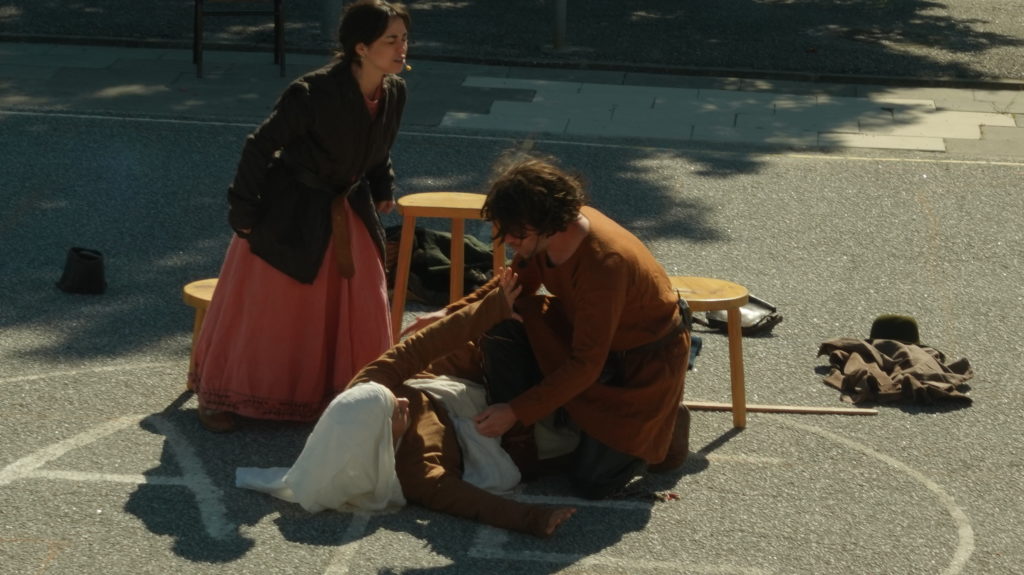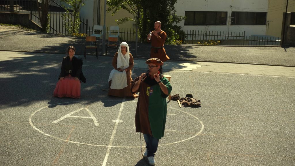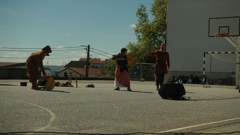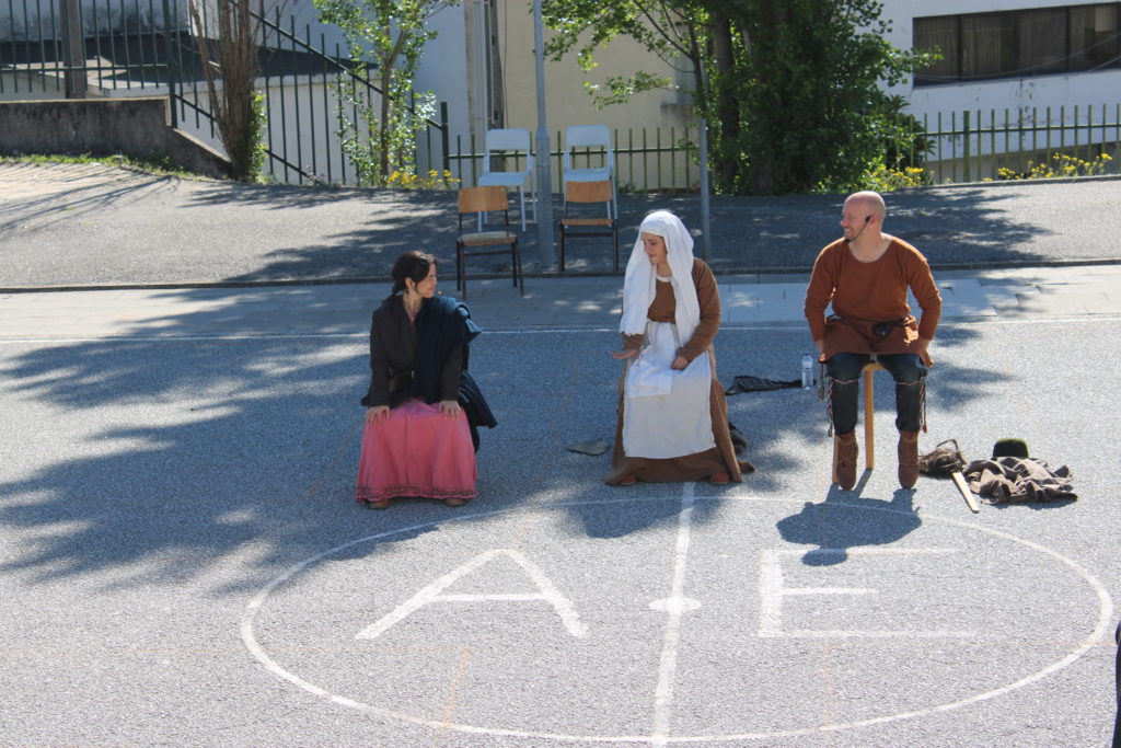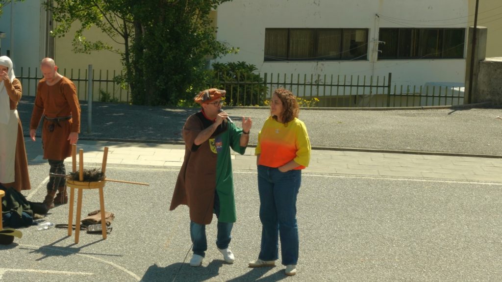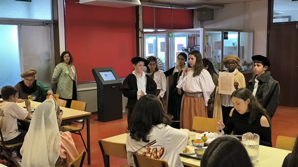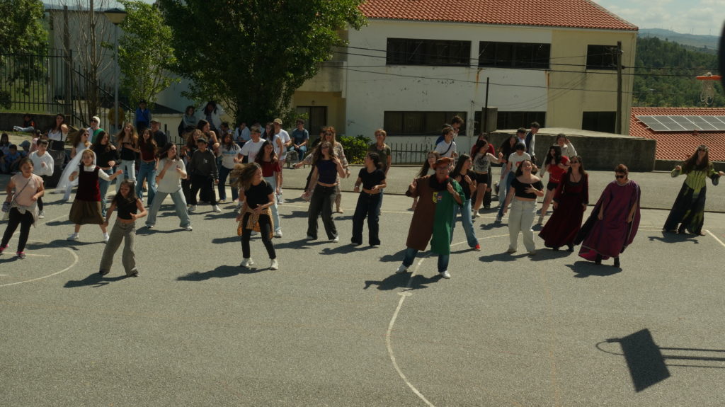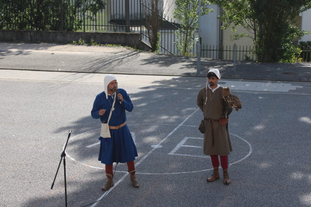 O tradicional Almoço Medieval reuniu alunos, docentes e não docentes, sendo acompanhado por momentos culturais, como a declamação de poemas na cantina, contribuindo para um ambiente de partilha e celebração.