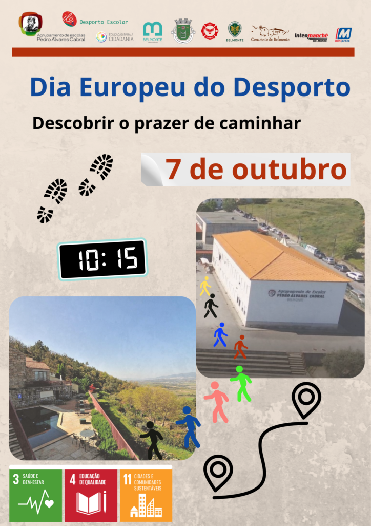 Os professores dos grupos de Educação Física e Ciências Naturais do AEPAC organizaram uma caminhada escolar para assinalar o Dia Europeu do Desporto, contando com a participação de todos os alunos, docentes e não docentes da escola sede e dos alunos do 4.º ano do agrupamento. O percurso decorreu entre a escola sede e a Pousada Convento de Belmonte.