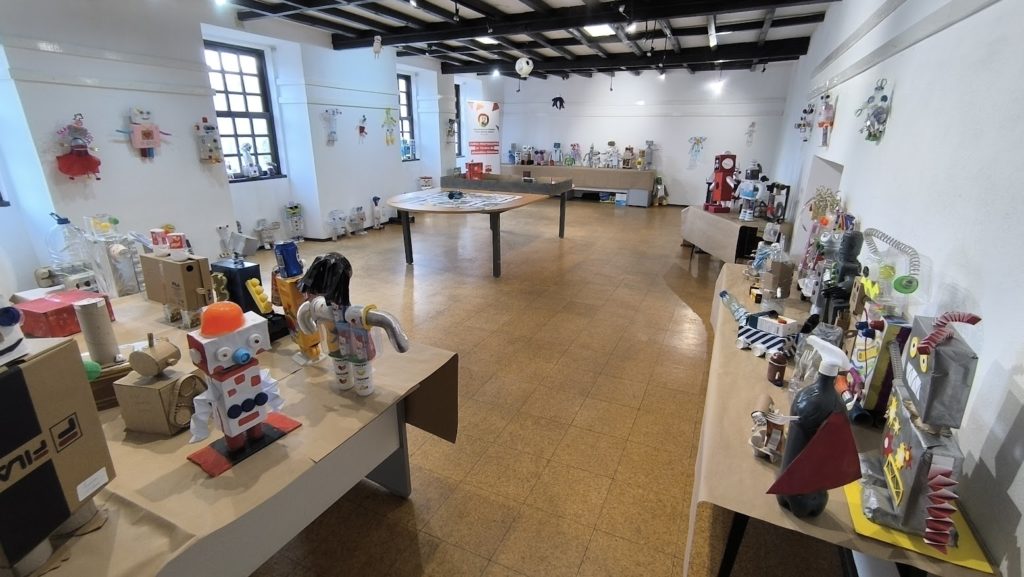 A exposição reúne um conjunto de trabalhos desenvolvidos pelos alunos do 1.º Ciclo do Ensino Básico e do 5.º ano, no âmbito da disciplina de Ciências da Computação/TIC e contando com a colaboração ativa dos respetivos pais e Encarregados de Educação. Os robôs expostos resultam da reutilização de materiais recicláveis, promovendo simultaneamente a criatividade, a sustentabilidade ambiental e o pensamento computacional, temas abordados com a utilização da plataforma ubbu.