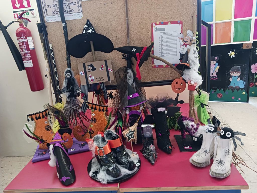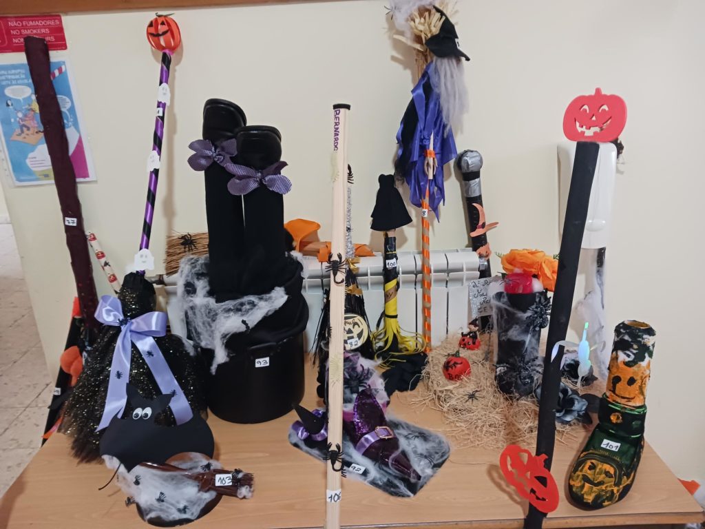 Nas escolas do 1.º ciclo, a exposição de sapatos e vassouras de bruxa foi um verdadeiro sucesso. Cada turma contribuiu com criações originais, elaboradas em família, feitas com materiais variados e muita criatividade, que deram vida às escolas, tal como tem sido habitual.