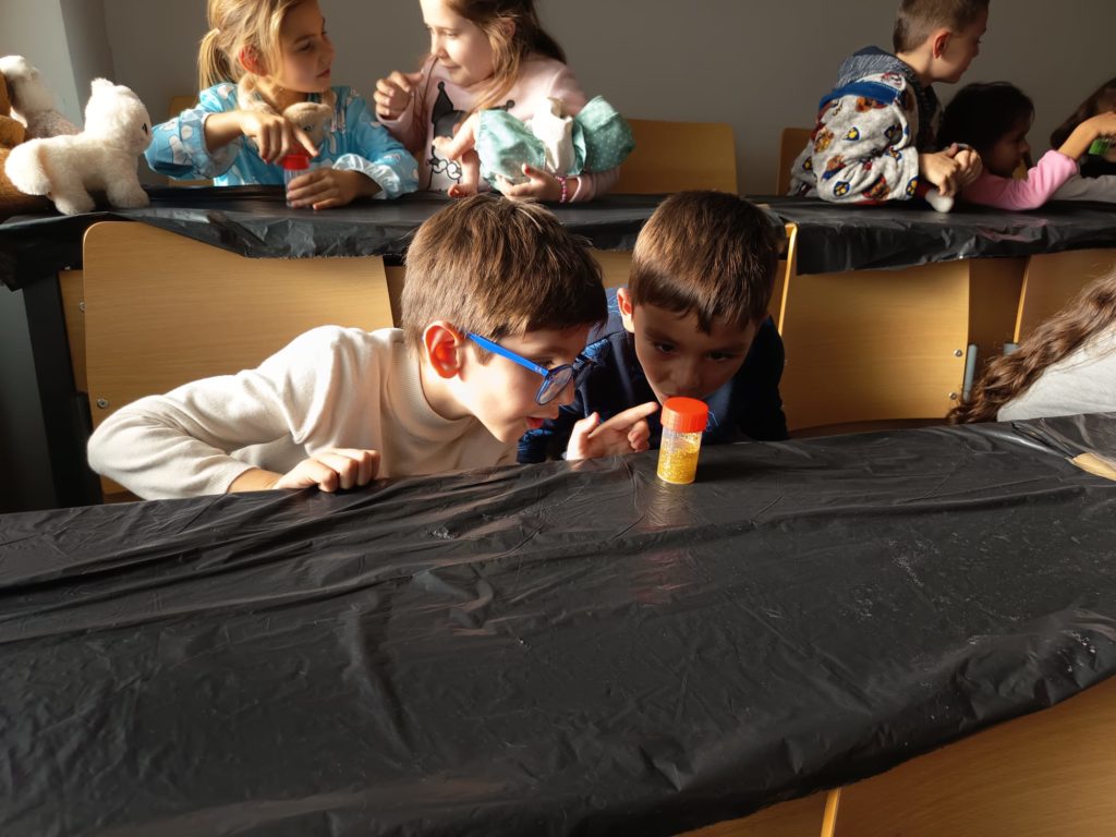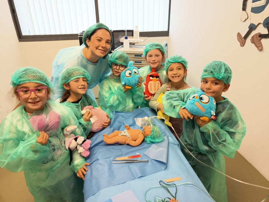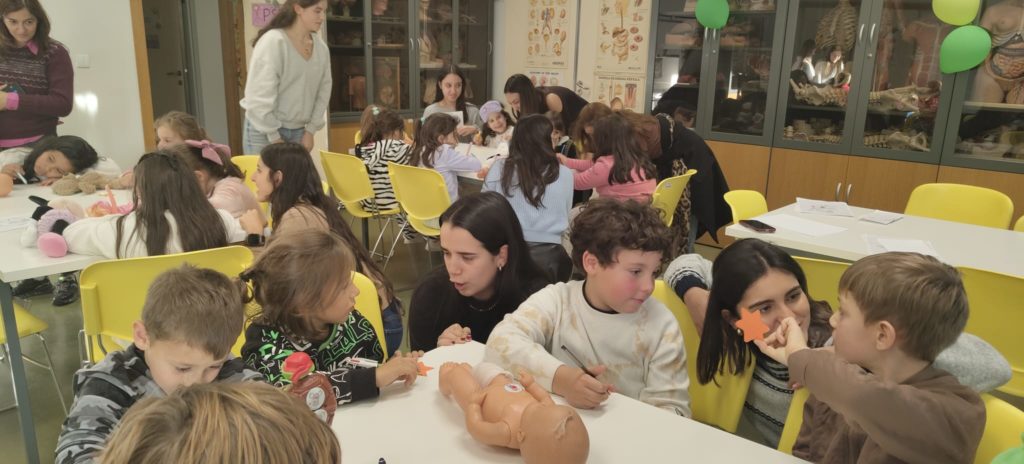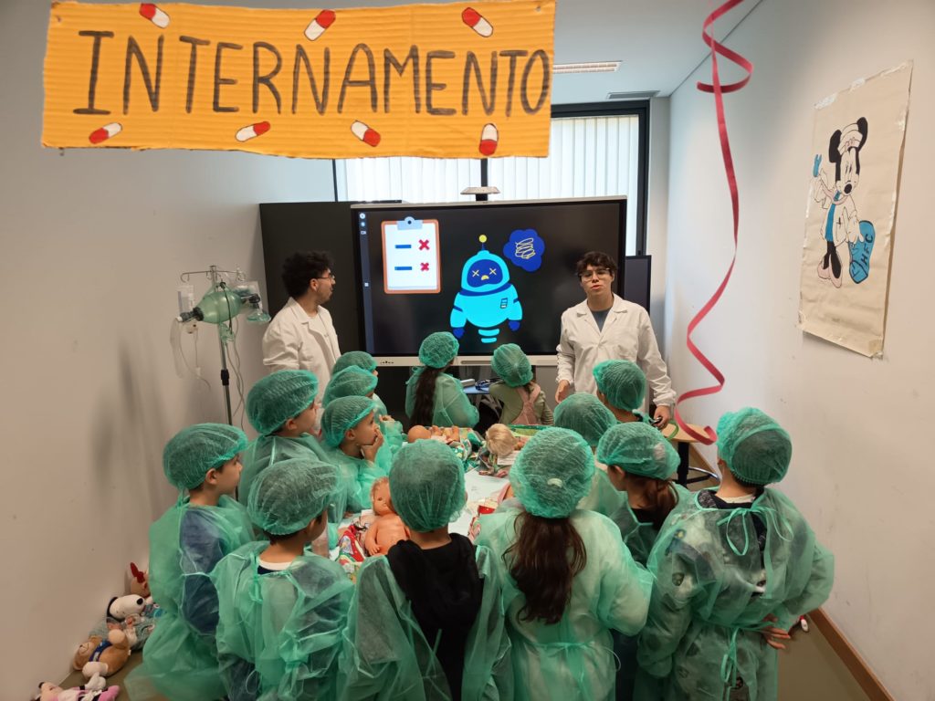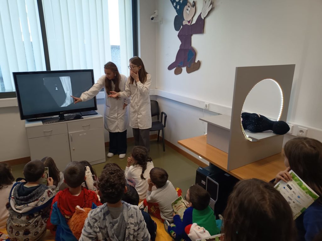 Organizada por Núcleos de Alunos da Faculdade de Ciências da Saúde da UBI, decorreu na semana de 20 de novembro a XVIII Edição do Hospital Faz-de-Conta. Para participarem nas atividades aí desenvolvidas, marcaram presença todos os alunos do pré-escolar e do 1º ano nosso Agrupamento. As mesmas decorreram sempre em alegria e com grande participação e empenho dos nossos jovens alunos que por um dia, foram profissionais de saúde no “mundo do faz-de-conta”. Tudo começava num corredor que simulava uma floresta encantada e onde cada aluno, depositava um desejo na árvore dos desejos. Cada criança trazia um boneco que tinha de curar, passando por diferentes estações onde se simulava a preparação de medicamentos, raio X, cirurgia, ambulatório, vacinação, entre outras. Este contato com os futuros profissionais como médicos, psicólogos e outros técnicos, visa aproximar as crianças aos mesmos, diminuindo situações de stress bem como, sensibilizar as crianças para certos cuidados a ter com a sua própria saúde. No final foi apresentada uma peça de teatro subordinado ao tema. E porque uma foto vale por mil palavras, aqui ficam alguns momentos…