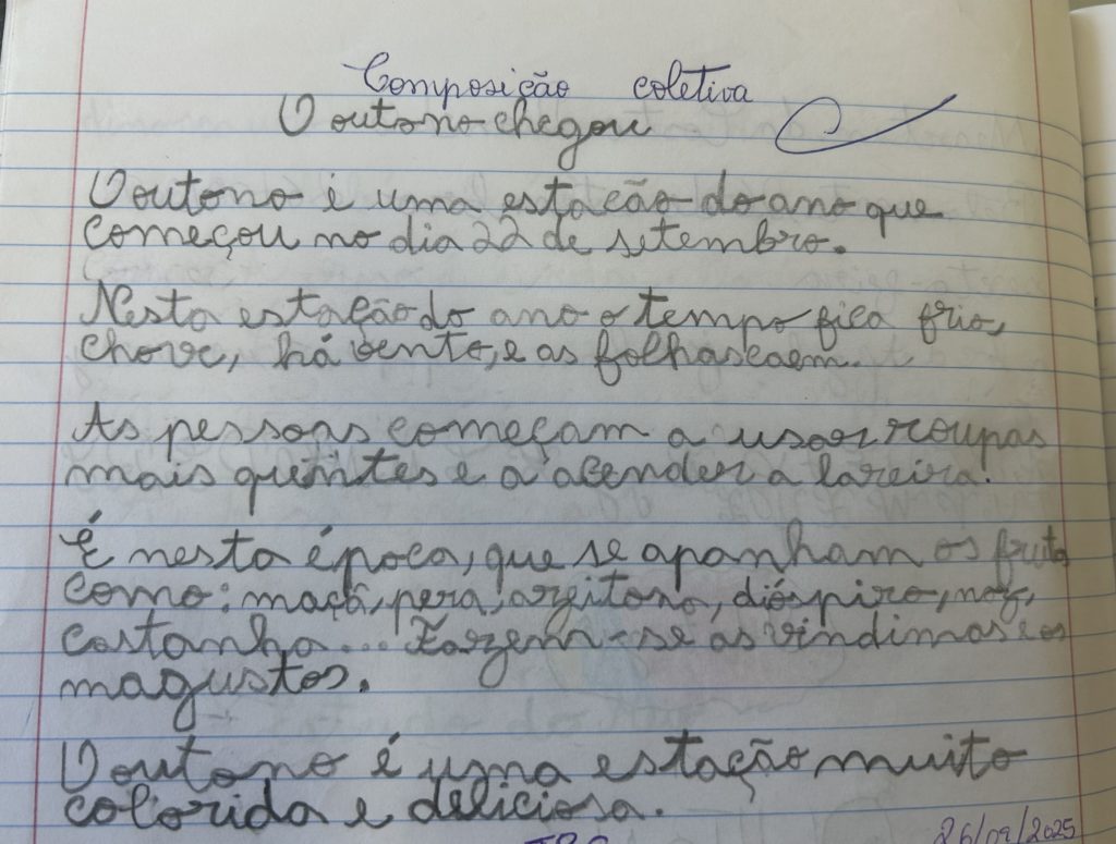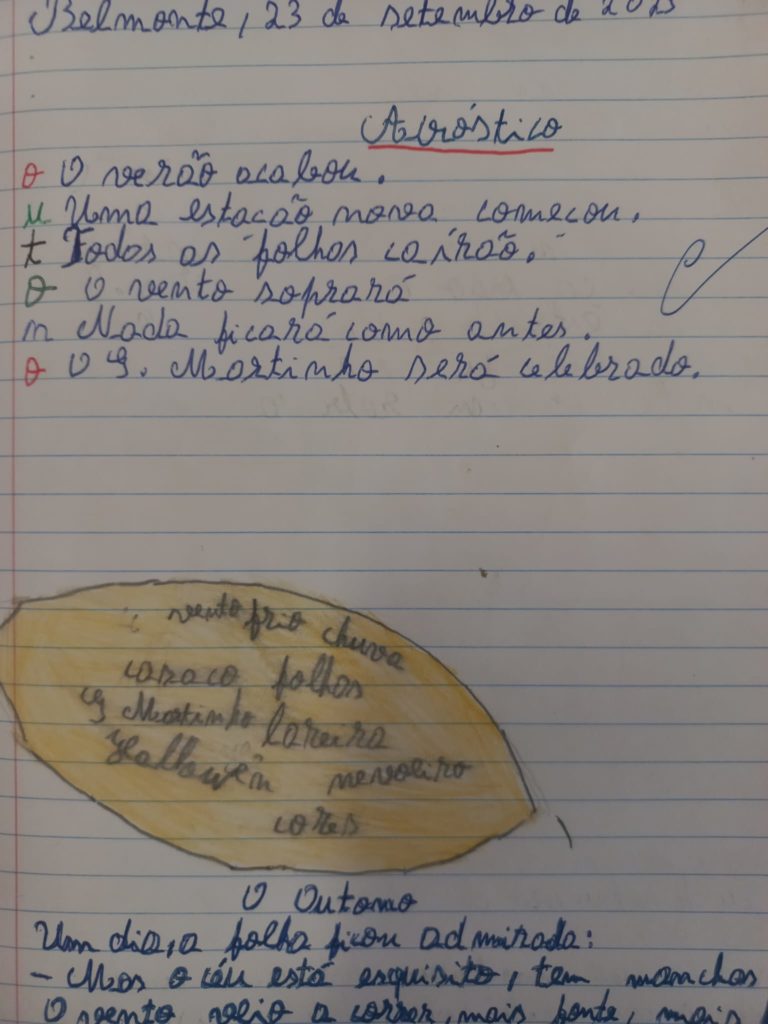 Durante esta estação, as turmas participaram em diversas atividades que combinaram escrita criativa e expressão artística, celebrando a beleza e os sentimentos que o outono desperta.