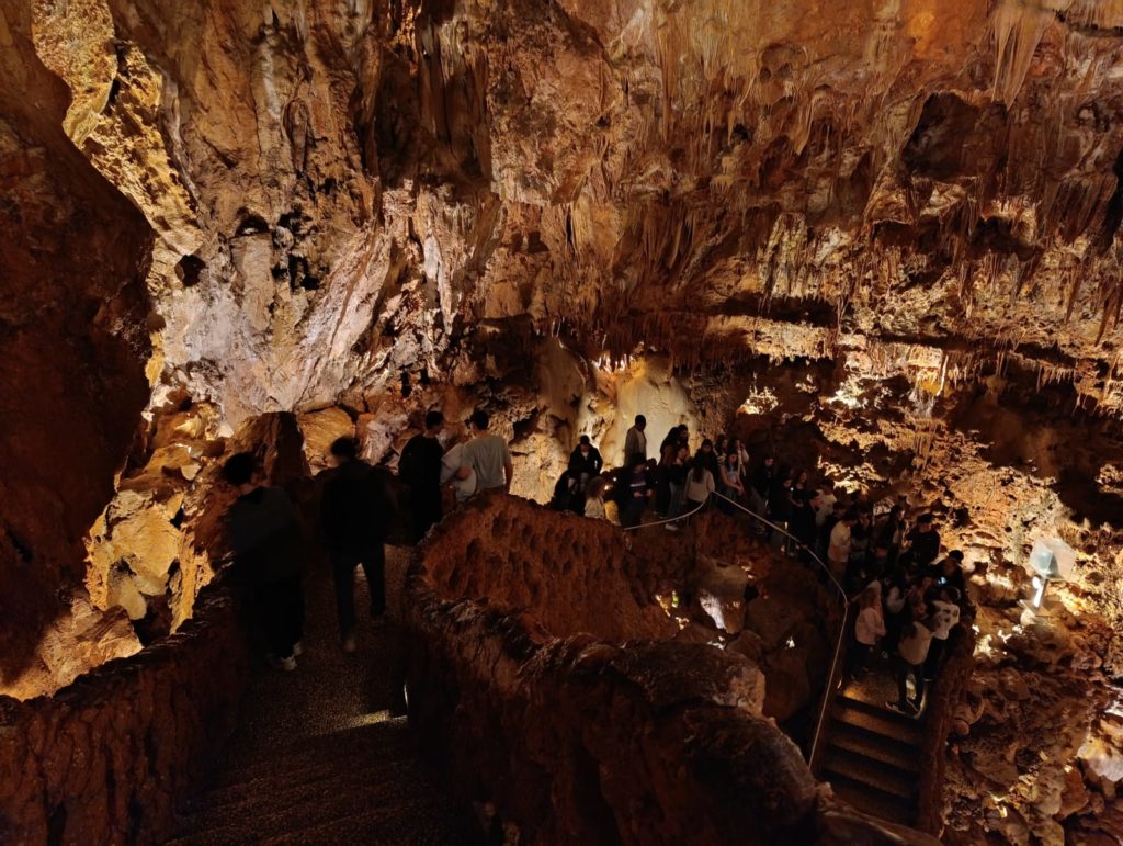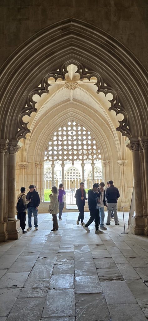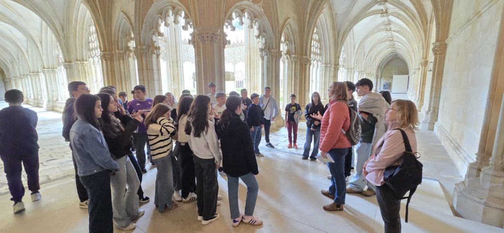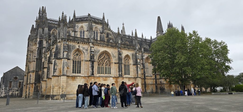 A atividade iniciou-se com a visita ao mosteiro da Batalha, o maior monumento de estilo gótico do século XIV em Portugal, mandado construir pelo rei D. João I, após a vitória portuguesa na batalha de Aljubarrota. A sua construção iniciou-se em 1386 ou 1387. Os alunos viram, fisicamente, as características deste estilo de construção, quer no exterior, quer no interior do mosteiro.A visita integrou vários espaços do mosteiro: a igreja; a Capela do Fundador (com o túmulo do rei D. João I e da rainha D. Filipa de Lencastre, ladeados dos túmulos de vários dos seus filhos e do neto: Infante D. Henrique, Infante D. Fernando, Infante D. João, mestre de Santiago, Infanta D. Isabel de Barcelos, Infante D. Pedro, duque de Coimbra, e do neto, D. Afonso V); o claustro real; o claustro de D. Afonso V; a sala do capítulo, local onde atualmente se localiza o túmulo do Soldado Desconhecido, bem como Museu de Oferendas ao Soldado Desconhecido, situado no antigo refeitório do mosteiro, e onde estão expostos tributos de várias nações, personalidades e ex-combatentes ao Soldado Desconhecido. Finalmente, os alunos visitaram as Capelas Imperfeitas, onde se localiza o túmulo do rei D. Duarte, filho de D. João I, e da sua esposa, a rainha D. Leonor de Aragão.Depois do almoço, os alunos deslocaram-se às Grutas de Mira de Aire, integradas no Parque Natural das Serras de Aire e Candeeiros, com o objetivo de enquadrar diversas Aprendizagens Essenciais das disciplinas de Biologia e Geologia e Ciências Naturais.Esta visita permitiu observar in situ um notável exemplo de modelado em rochas calcárias, resultante da dissolução química do calcário pela ação de águas ligeiramente ácidas, ricas em dióxido de carbono. Ao longo do percurso subterrâneo, os alunos identificaram formas características, como estalactites, estalagmites e colunas, compreendendo os processos de precipitação do carbonato de cálcio que estão na sua origem.Esta experiência contribuiu para consolidar conceitos relacionados com a dinâmica das águas subterrâneas, a formação de cavidades e a evolução destas paisagens, promovendo uma aprendizagem contextualizada e significativa.